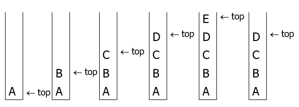 보시는 거처럼 top의 값을 빼 출력을 하고 그 다음에 top을 감소시킵니다.